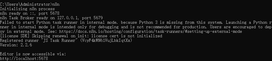 n8n出现localhost:5678则说明服务已运行