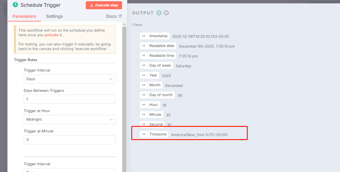 Schedule Trigger (定时触发): 设置两个时间点:每天 08:00 和 17:00。